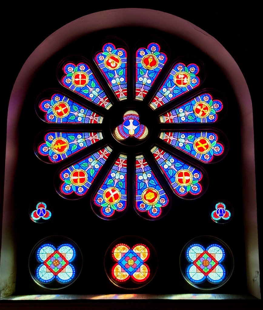 The symbol of two crossed fish associated with Saint Simon the Zealot in a rose window reflects his role as a “fisher of men” through his evangelistic work. This imagery emphasizes his success in spreading the Gospel and converting people to Christianity. The crossed fish symbolize unity and the mission of bringing souls to Christ, a metaphor rooted in Jesus’ call to His disciples to become “fishers of men” (Matthew 4:19).